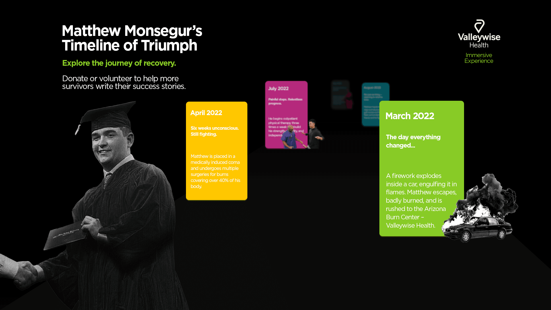 When I first heard Matthew’s story, a teenager who survived a traumatic car fire and months of painful recovery, I knew this campaign needed to do more than raise awareness. It needed to make people feel something. The challenge was turning a deeply personal, devastating experience into a public message that inspired empathy, urgency, and support, without sensationalizing pain.